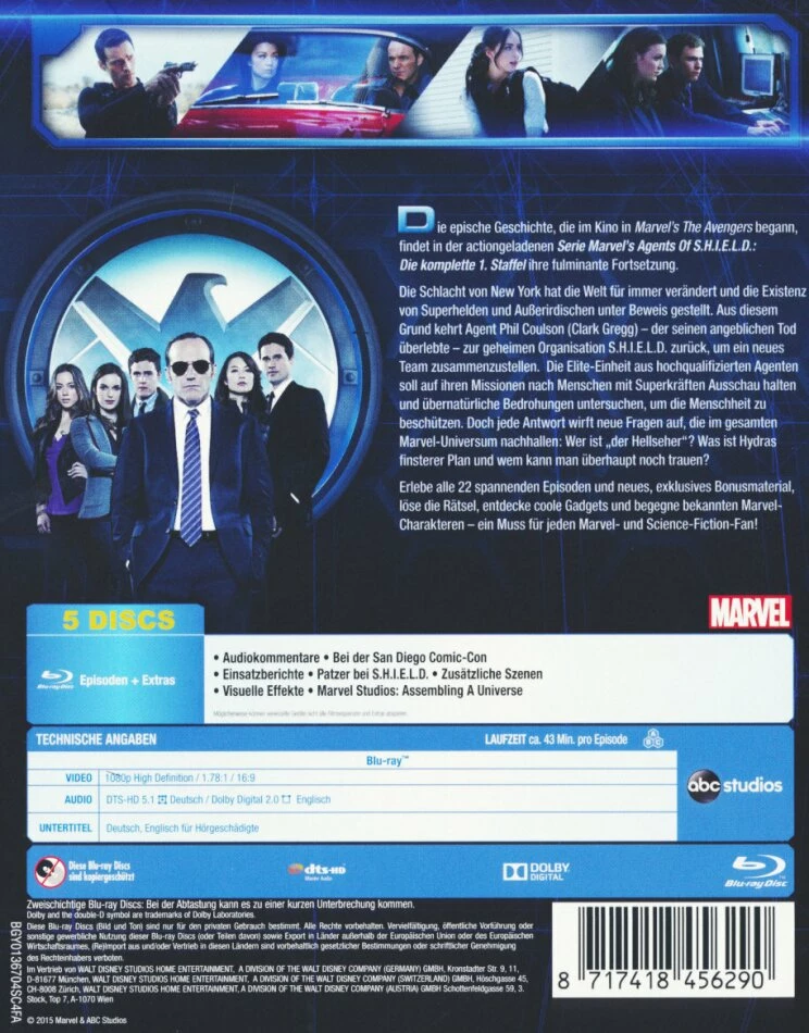 Die epische Geschichte, die im Kino in Marvel`s The Avengers begann, findet in der actiongeladenen Serie Marvel`s Agents of S.H.I.E.L.D.: Die komplette 1. Staffel ihre fulminante Fortsetzung. Die Schlacht von New York hat die Welt für immer verändert und die Existenz von Superhelden und Ausserirdischen unter Beweis gestellt. Aus diesem Grund kehrt Agent Phil Coulson – der seinen angeblichen Tod überlebte – zur geheimen Organisation S.H.I.E.L.D. zurück…