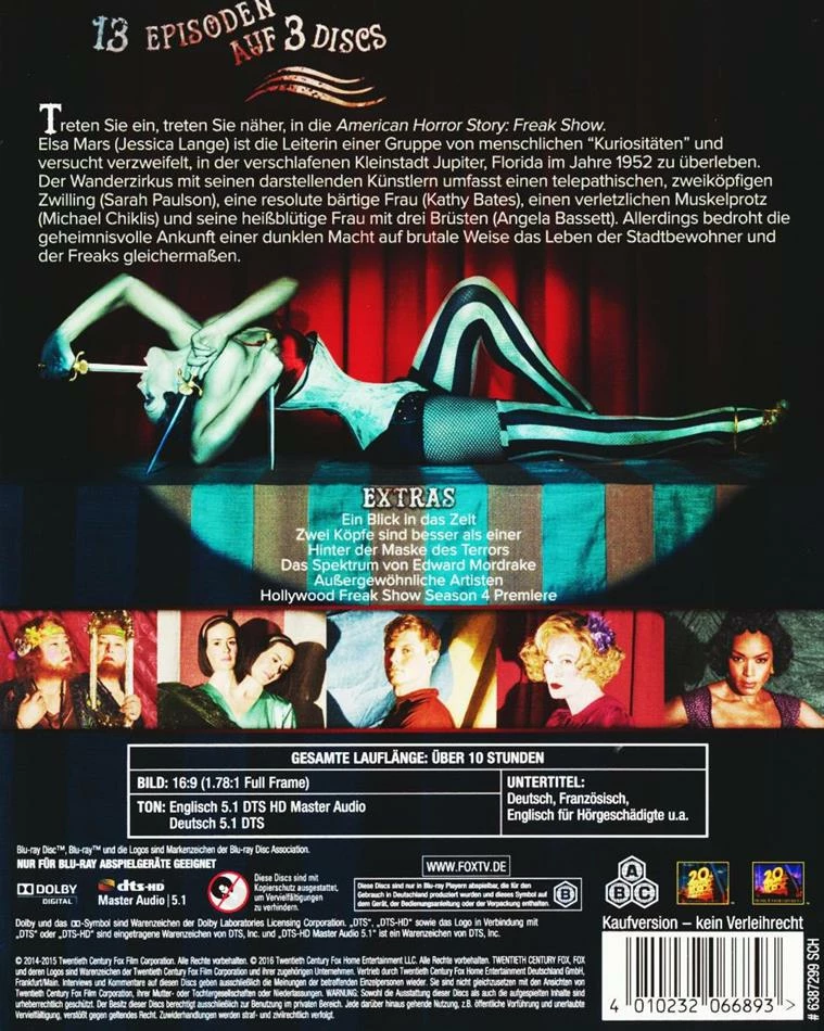 Elsa Mars (Jessica Lange) ist die Leiterin einer Gruppe von menschlichen « Kuriositäten » mit dem verzweifelten Versuch, in der verschlafenen Kleinstadt Jupiter, Florida im Jahre 1952 zu überleben. Der Wanderzirkus mit seinen darstellenden Künstlern umfasst einen telepathischen, zweiköpfigen Zwilling (Sarah Paulson), eine resolute bärtige Frau (Kathy Bates), einen verletzlichen Muskelprotz (Michael Chiklis) und seine heissblütige Frau mit drei Brüsten (Angela Bassett). Allerdings bedroht die geheimnisvolle Ankunft einer dunklen Macht auf brutale Weise das Leben der Stadtbewohner und der Freaks gleichermassen.