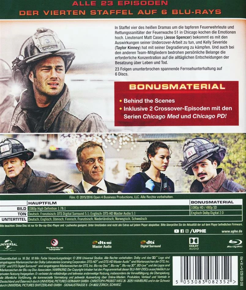 In Staffel vier des heissen Dramas um die tapferen Feuerwehrleute und Rettungssanitäter der Feuerwache 51 in Chicago kochen die Emotionen hoch. Lieutenant Matt Casey bekommt es mit den Auswirkungen seiner Undercover-Arbeit zu tun, und Kelly Severide hat mit seiner Degradierung zu kämpfen. Und auch bei den anderen Team-Mitgliedern bedrohen persönliche Belange die erforderliche Konzentration auf die alltäglichen Entscheidungen der Besatzung über Leben und Tod.