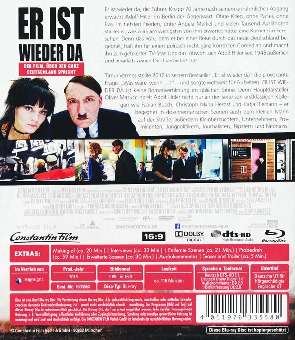 Adolf Hitler erwacht 66 Jahre nach dem Ende des Zweiten Weltkriegs mitten in Berlin. Was ist mit Deutschland in der Zwischenzeit geschehen? Überall Ausländer, Demokratie und Euros, das gefällt dem Ex-Diktator gar nicht. Doch niemand glaubt, dass er wirklich zurückkehrt ist, alle halten ihn für einen Imitator – einen verdammt witzigen. Ein Kioskbesitzer, der dem obdachlosen Hitler zeitweise Unterschlupf gewährt, vermittelt ihn an die Fernsehproduzenten Sensenbrink und Sawatzki. Senderchefin Bellini kann schnell davon überzeugt werden, dass sie potentielles Comedy-Gold vor sich hat. Hitler bekommt ein Büro, und kurz nachdem ihm seine neue Sekretärin Fräulein Krömeier erklärt hat, was eine Computermaus ist und wie man ins „Internetz“ kommt, weiss Hitler schon genug über die Gegenwart, um reichlich Munition für seine Bühnenauftritte zu haben. Es dauert nicht lange, und er ist wieder da.