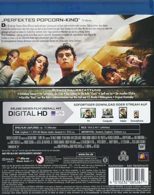 Thomas wacht auf einer Lichtung auf und kann sich an nichts mehr erinnern – ausser seinem Vornamen. Bald erfährt er, dass dieser fremde Ort inmitten eines Labyrinths liegt, aus dem es keinen Ausweg zu geben scheint. Aber Thomas ist nicht allein. Mit ihm sind viele andere Jungen im Labyrinth gefangen, die ebenfalls ihr Gedächtnis verloren haben wie Newt, Alby, Gally und Minho. Eines Tages ist ein Mädchen die Neue auf der Lichtung. Sie heisst Teresa und soll die Letzte sein. Gemeinsam versuchen sie einen Weg in die Freiheit zu finden und das unheimliche Geheimnis zu lüften, wer sie hergebracht hat und warum?