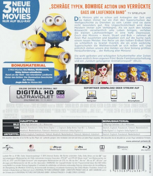 Seit Anbeginn der Zeit suchen sich die Minions einen Bösewicht als Herren. Doch als sie auf einmal alleine dastehen und in eine tiefe Depression verfallen, machen sich Kevin, Stuart und Bob in die weite Welt auf, um einen neuen Anführer zu finden.