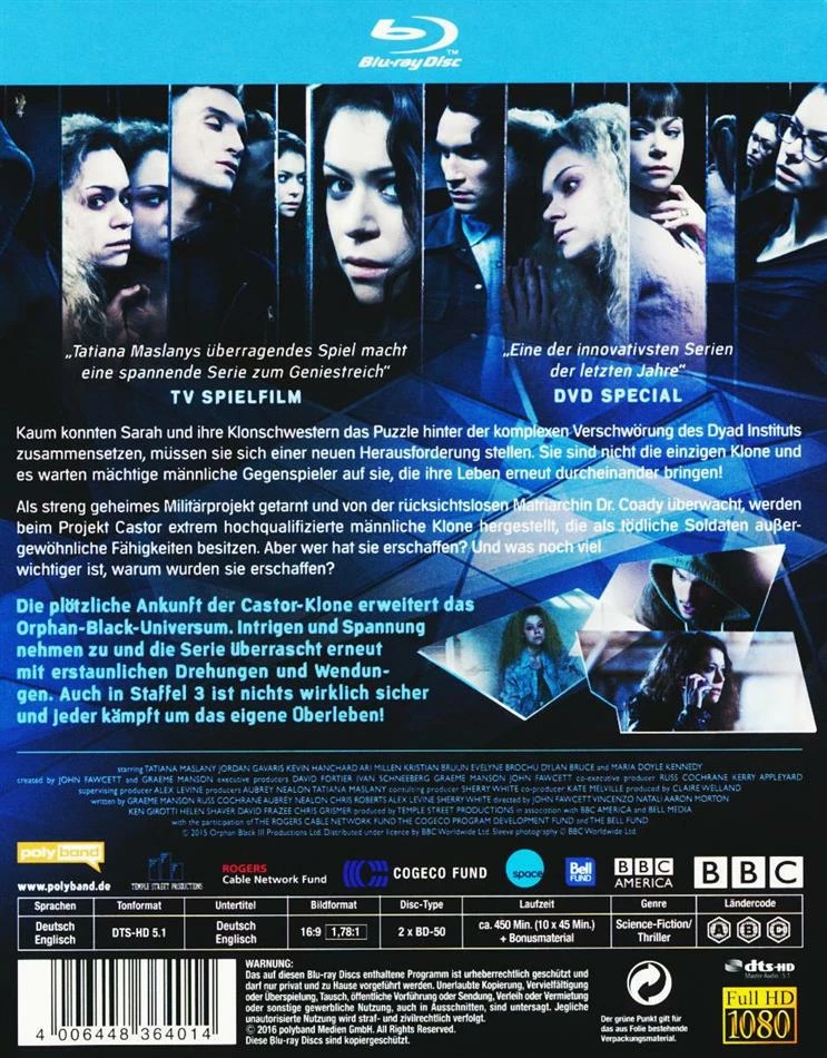 Die plötzliche Ankunft der Castor-Klone erweitert das Orphan-Black-Universum. Intrigen und Spannung nehmen zu, und die Serie überrascht erneut mit erstaunlichen Drehungen und Wendungen.