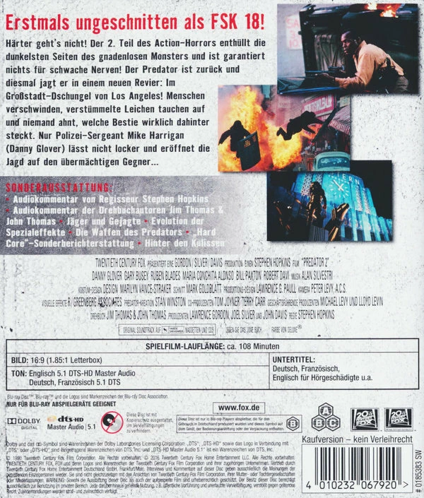 Vor Jahren hatte er sich seine Opfer dort ausgesucht, wo die Welt am unwegsamsten ist – tief im südamerikanischen Dschungel. Heute hat er ein anderes Jagdrevier gefunden – den Dschungel von Los Angeles. Mitten im heissesten Sommer schlägt der Predator wieder zu: Menschen verschwinden, verstümmelte Leichen stacheln die bis an die Zähne bewaffneten Drogenmafia Gangs zu einem blutigen Bandenkrieg an. Los Angeles verwandelt sich in einen Schlachthof. Der totale Zusammenbruch scheint unaufhaltsam. Angst und nackter Terror beherrschen die Stadt. Nur der Polizei-Sergeant Mike Harrigan will sich nicht damit abfinden, ein leichtes Opfer zu sein. Er stellt sich dem übermächtigen Unbekannten…