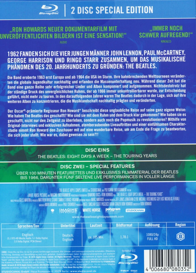 Bis heute sind sie die Könige des Pop: Die vier Pilzköpfe Paul, John, George und Ringo eroberten in den Sechzigern von Liverpool aus die Welt. Der Dokumentarfilm begleitet die Band während ihrer Tour-Jahre, und damit von ihren Anfängen im Hamburger Star Club Anfang der Sechziger bis zu ihrem letzten Konzert im Candlestick Park in San Francisco 1966. Wie wurde aus den vier jungen Männern aus Liverpool, John Lennon, Paul McCartney, George Harrison und Ringo Starr, die erfolgreichste Band der Popgeschichte?